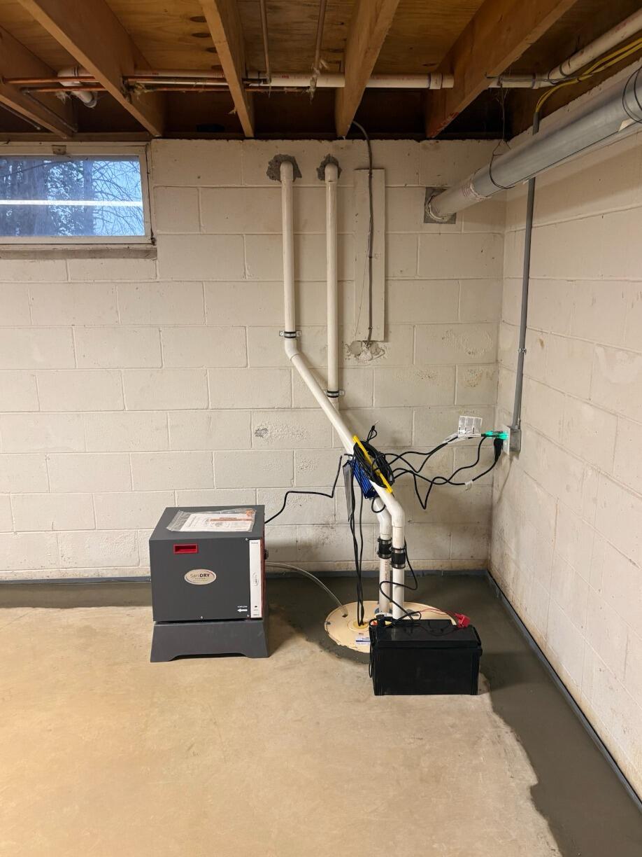 In Avondale, PA, an older home was dealing with water entering the unfinished basement through floor cracks during heavy rains. We installed WaterGuard, a TripleSafe sump pump, and a SaniDry Sedona to control water intrusion and reduce moisture throughout the space.