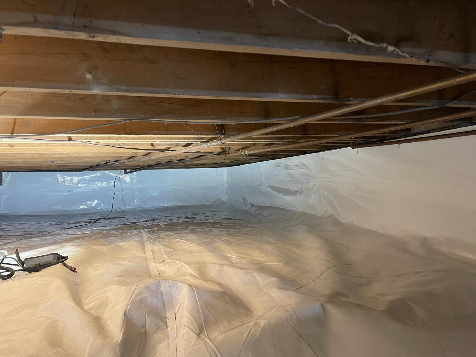 Excess moisture in this crawl space was causing damp conditions and concern for the homeowner. With the installation of CleanSpace, the dirt floor is now sealed, helping to keep the crawl space dry and healthier overall.