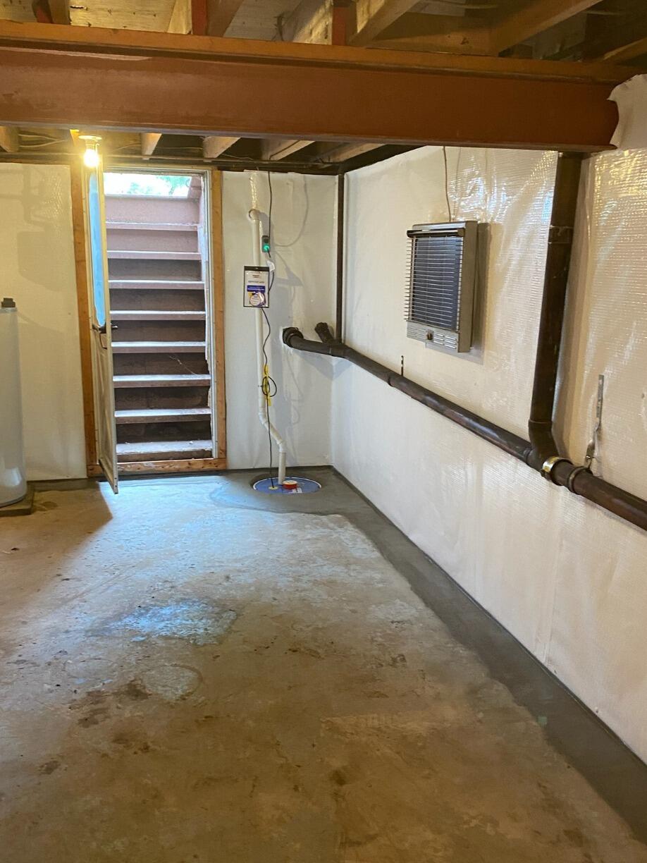 This basement was experiencing ongoing water issues and dampness. We installed WaterGuard, a SuperSump, and encapsulated the walls with CleanSpace to fully waterproof the space and improve air quality.