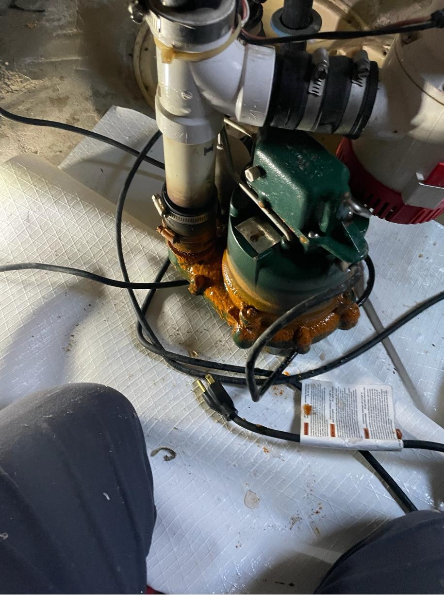 Quality 1st Service technician Frank provided this homeowner with top notch annual maintenance on the TripleSafe Sump Pump wet basement solution. As the liner can accumulate dirt and sediment as ground water passes through the system, Frank cleaned the primary 1/3 hp cast-iron Zoeller pump as well as the secondary 1/2 hp pump and the UltraSump Battery Backup Sump Pump. Check valves were replaced, weep holes cleared, pump stands were cleaned and liner was sanitized. All parts were reassembled, replaced in the liner, and closed with the watertight lid to keep debris from entering. The system could continue pumping up to 2,220 gallons of water per hour at an 8-foot head effectively and efficiently!
