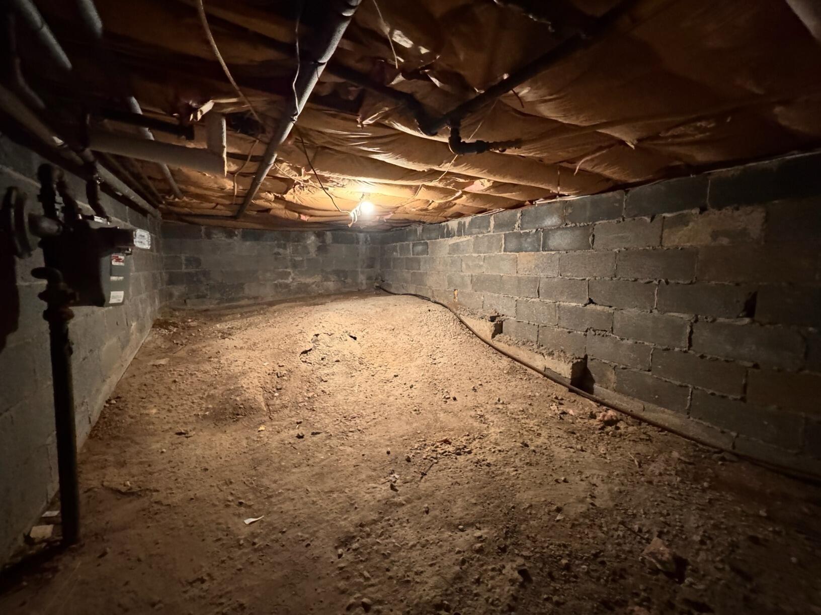 This crawlspace in Wayne, NJ, was inadequately insulated. The dirt floors were allowing moisture to permeate the environment, potentially leading to adverse conditions such as mold and rot. Additionally, the lack of proper insulation was resulting in higher heating expenses for the homeowner. They reached out to Quality 1st Basements, and a System Design Specialist conducted a thorough inspection. The specialist recommended installing SilverGlo to insulate the walls. SilverGlo utilizes graphite-impregnated insulation to reflect heat back into the crawlspace. The homeowner now has the reassurance that their crawlspace is adequately insulated, allowing them to reduce heating costs.