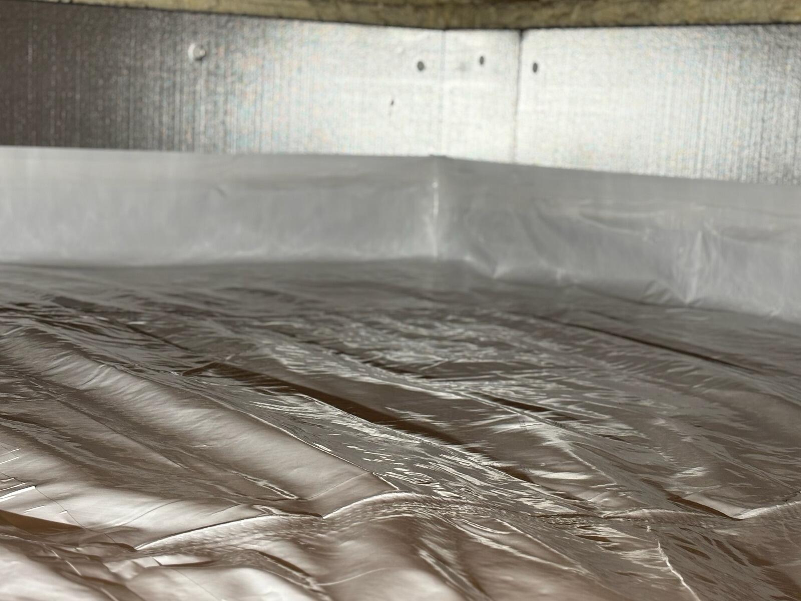The CleanSpace liner now seals the crawl space from the earth, preventing water vapor and musty odors from rising into the home. Behind it, SilverGlo insulation panels help regulate temperature and improve energy efficiency by reflecting heat back into the space. Finally, the SaniDry Sedona dehumidifier maintains ideal humidity levels, protecting the home from mold, rot, and allergens.