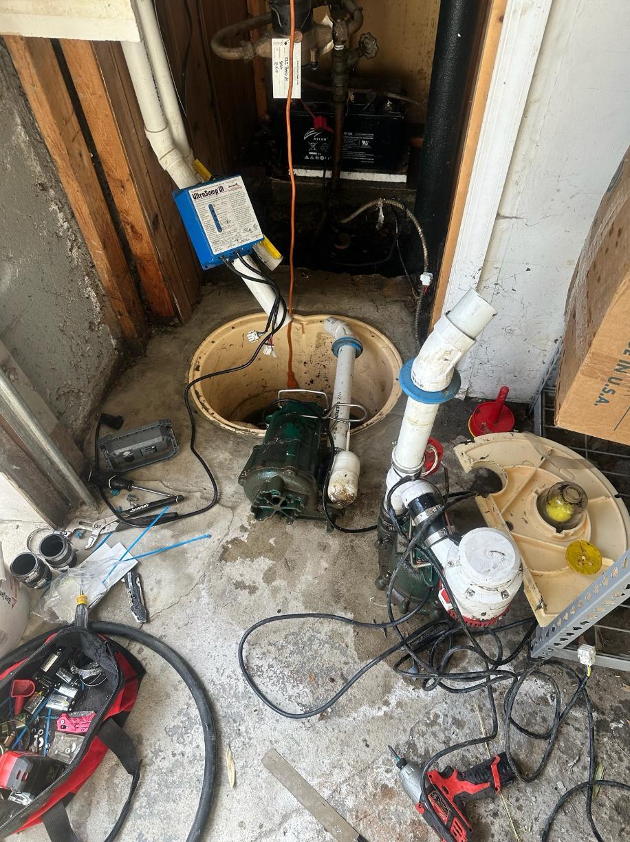 Quality 1st Service Technician Justin performed annual maintenance on the TripleSafe Sump Pump System at a home in Staten Island, NY. Justin removed the airtight lid to access the cast-iron Zoeller pumps. As dirt and sediment from groundwater instrusion can move through the system, all of the components were carefully removed and cleaned, including the 1/3 hp pump capable of pumping 2,220 gallons of water per hour at an 8 foot head, the 1/2 hp pump capable of pumping as much as an additional 3,900 gallons of water per hour, and should the power go out, the UltraSump Battery Backup capable of pumping 11,500 gallons or more on a single charge in the event of a main pump failure or power outage. Annual maintenance keeps the system operating effectively and enhances its operation and life!