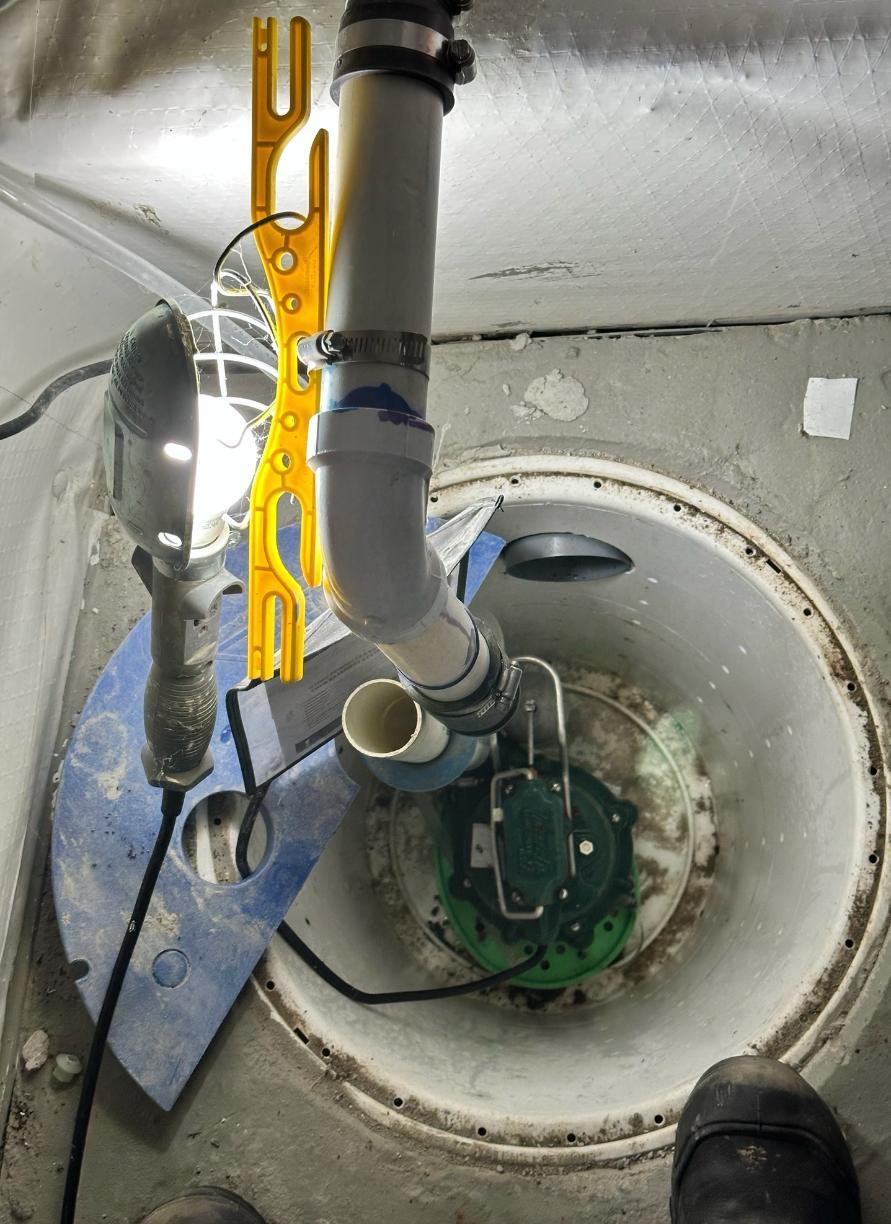 In addition to cleaning the pumps and its parts, Quality 1st Service Technician Nelson ensures that the sump pump stands be removed and cleaned during annual maintenance along with sanitizing the liner. The sump pump stands help keep the sump pumps off the bottom of the liner and out of the sediment and water that can accumulate during normal operations. If dirt gets into the sump pump, it can impede its function, cause it to overheat, or cause failure. Annual maintenance helps to enhance the operation and life of this homeowner's TripleSafe Sump Pump!