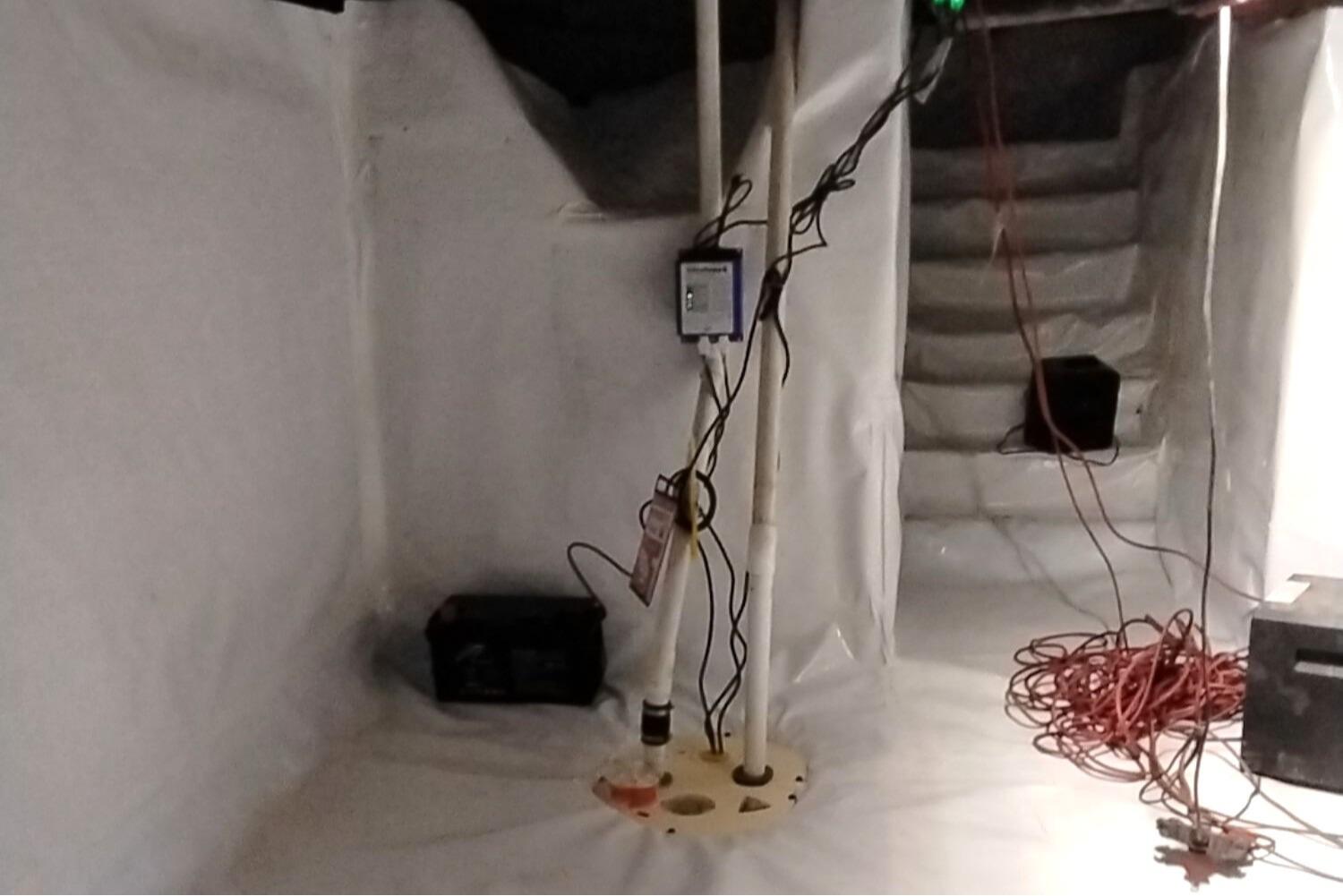 Our team stepped in to transform this dark and damp crawl space into a dry and healthy environment by encapsulating it using our CleanSpace Encapsulation System. This 20-mil reinforced polymer liner serves as a vapor barrier and prevents moisture from getting inside. It also does not support mold growth and is extremely durable, which means you can walk around on it without having to worry about rips or tears. To protect the crawl space from flooding and to transport any incoming water out and away from the home, we installed our TripleSafe Sump Pump System. Equipped with two cast-iron Zoeller horsepower pumps and a battery backup system, it can discharge thousands of gallons of water. Now this crawl space will stay dry and water free for years to come!